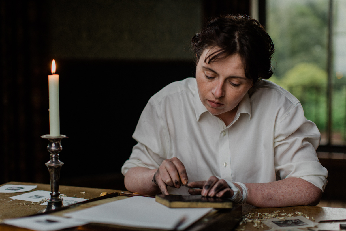 An expressionistic short based on the life, work and words of one of Northern Ireland’s most accomplished artists, Mabel Annesley, Across the Grain was writen by Laura Morgan and Maeve O'Lynn, co-produced by Up the Lagan, directed by Joe Laverty and stars Nicky Harly. The shoot was on location at Castlewellan Castle, Annesley’s former home and the landscape that inspired and informed her artistic practice. Encompassing themes of the creative process and the intermingling of place and personal relationships as both a source of and barrier to inspiration, Across the Grain celebrates Annesley’s legacy as an artist, a pioneering wood engraver, and a woman displaced by inheritance, war, class and time. This Audio Visual Instillation is part of the Women of the Ulster Unit project.